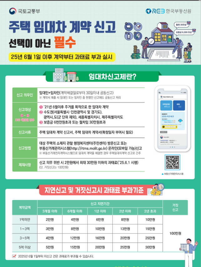 주택임대차 계약신고 과태료 유예기간이 종료됨에 따라 2025년 6월 1일부터는 무조건 신고를 해야 합니다. 모르고, 깜빡하고 실수로 계약일로부터 30일 이내에 신고를 하지 않으면