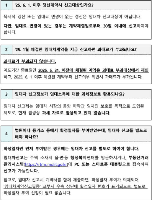 📌 묵시적 갱신 또는 임대료 변경이 없는 갱신은 임대차 신고대상이 아닙니다.